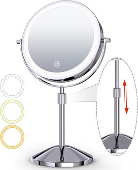 Toptan çift taraflı 3-Color modları 1X/10X büyütme makyaj aynası ile LED ışık kişiselleştirilmiş masaüstü kozmetik ayna
